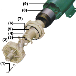 MP型磁力驱动循环泵运转是在连轴上和叶轮上分别装配有磁性材料而互相吸引偶合,无需配以传统机械轴封,因而是完全密封的。电动机转动扭力是通过主动磁及从动磁的引力带动叶片工作运转。现今惯用的磁力驱动泵的缺点是在缺液情况下绝对严禁运转否则整机将毁坏,给使用者增添不必要的麻烦和烦恼。本公司的磁力驱动泵则不必为此担心。它采选了一种特别设计的特配方陶瓷作轴承,具有耐磨性和抗腐蚀性,使其性能和质量安全得以保证。